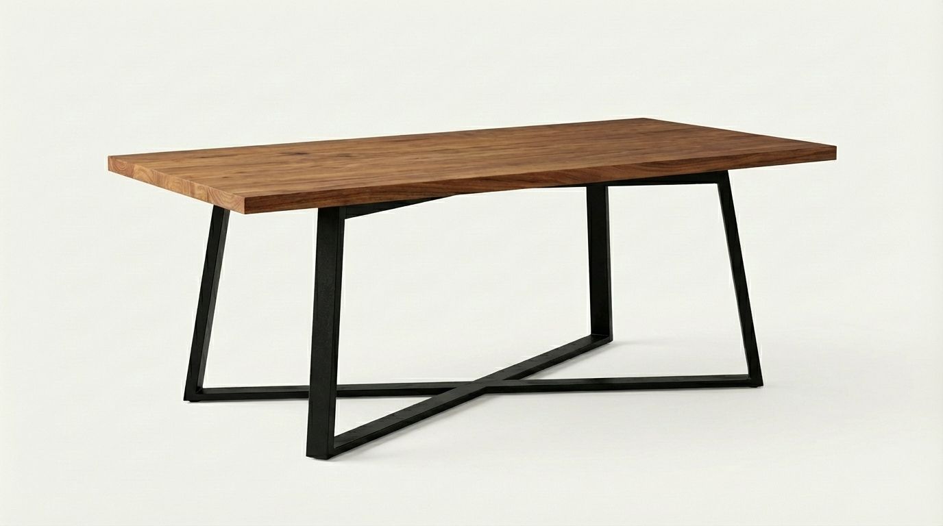 Esta mesa de comedor fusiona la nobleza de la madera de raulí hualle con la solidez del fierro electropintado, logrando una pieza que combina artesanía y diseño contemporáneo. Ideal para quienes buscan un mueble funcional, resistente y con un acabado cálido que realce la identidad de su espacio.